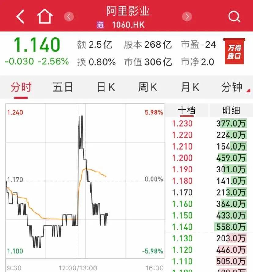 今日,在国家电影局公告发布后,影视股午后走高,截至发稿,IMAX一度涨7%,猫眼娱乐涨6%,阿里影业涨3.4%,但随后便回落,截至发稿,猫眼娱乐跌2.05%,IMAX China跌4.39%,阿里影业跌2.56%。