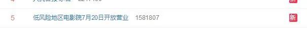 16日,国家电影局发布通知,在电影院各项防控措施有效落实到位的前提下,低风险地区可于7月20日有序恢复开放营业。