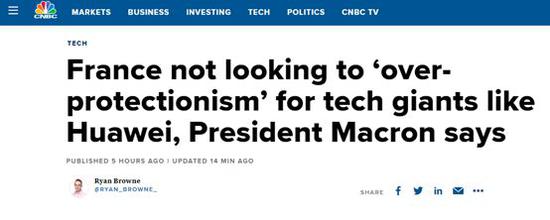 对于马克龙的这番回应,CNBC则形容这等于是给封杀华为的“保护主义”措施“泼了一盆冷水”。
