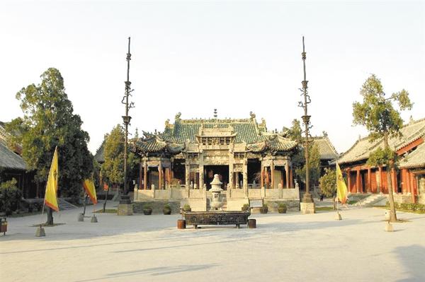 周口关帝庙 位于河南省周口市川汇区中州大道沙颍河北岸,是“豫平原保存较好,建筑艺术价值较高的古建筑群”。 周口关帝庙始建于康熙三十二年(1693年),乾隆、嘉庆年间多次扩 修,至道光十六年(1832年)全部建成,历时145年。东西宽105米,南北长158米,面积12590平方米,占地20余亩。 周口关帝庙是全国重点文物保护单位,号称“周口八景之冠”。它犹如一段凝固的历史,记载着昔日周家口商业的繁荣和经济的鼎盛。关帝庙本名“山陕会馆”。