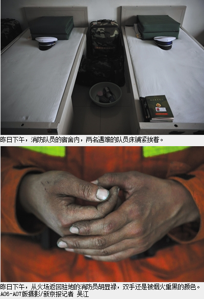 跟着胡显禄一同逃生的还有四中队二班副班长赵茂亦。“就十几秒时间,像是过了一个世纪。”讲述中赵茂亦数度流泪,他回忆,从火场出来的最后一刻,曾回头看了一眼,一名小战士还在火场里,“当时看到了他绝望的表情”。事发四天了,赵茂亦每天晚上都会梦见那个小战士伸着烧焦的手,对他说,“拉我一把”。