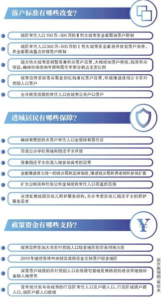 《重点任务》提出,推进常住人口基本公共服务全覆盖。确保有意愿的未落户常住人口全部持有居住证,鼓励各地区逐步扩大居住证附加的公共服务和便利项目。2019年底所有义务教育学校达到基本办学条件“20条底线”要求,在随迁子女较多城市加大教育资源供给,实现公办学校普遍向随迁子女开放,完善随迁子女在流入地参加高考的政策。