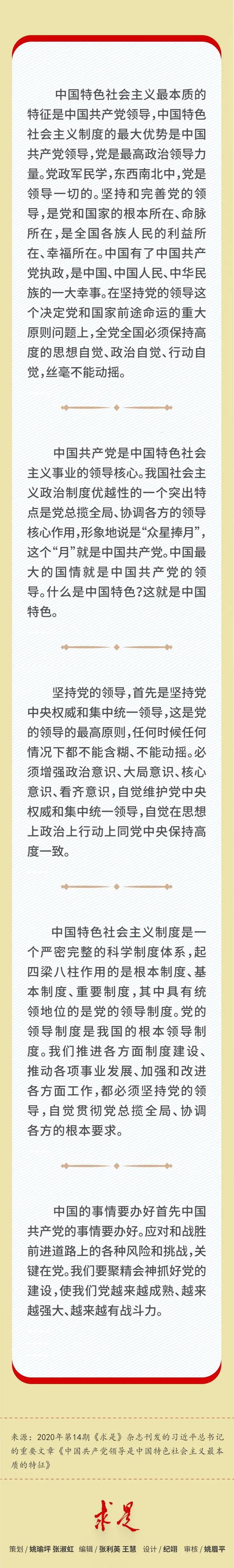 原标题:习近平总书记阐述“中国共产党领导是中国特色社会主义最本质的特征”