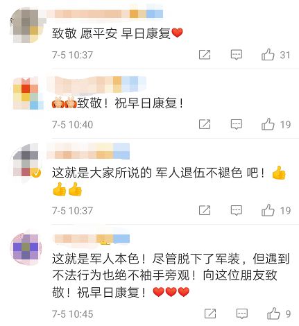 当看到他人财产受到威胁时,尹文杰不顾个人安危,挺身而出。作为一名退伍军人,他所表现出来的勇敢、顽强与果断令人敬佩。很多网友纷纷为其义举点赞,也祈愿能早日康复。