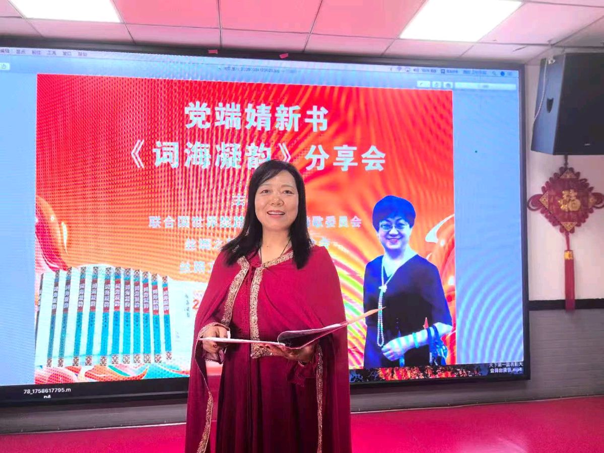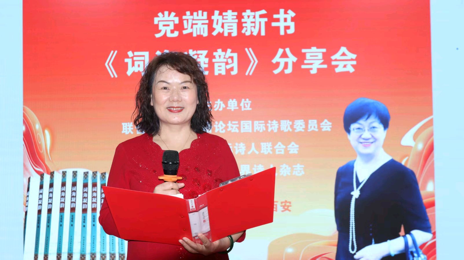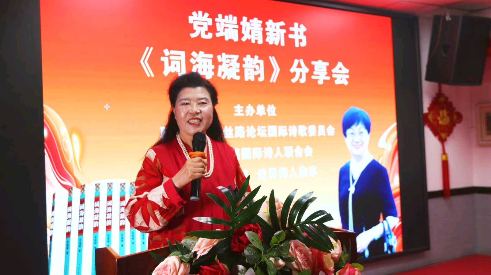 丝绸之路国际诗人联合会主席、联合国世界丝路论坛主席王芳闻主持并致辞,她介绍了诗人党端婧新书《辞海凝韵》诗歌创作的基本情况,并进行了精彩点评。