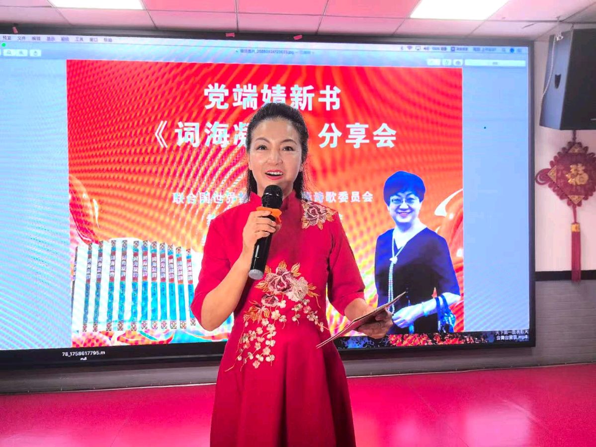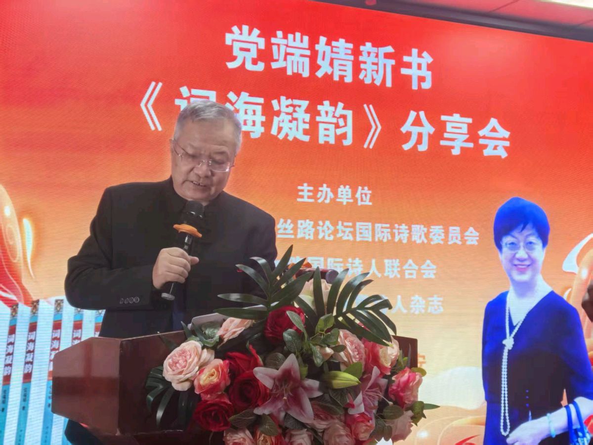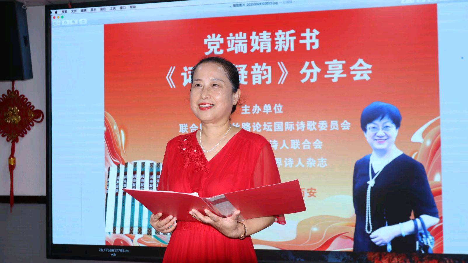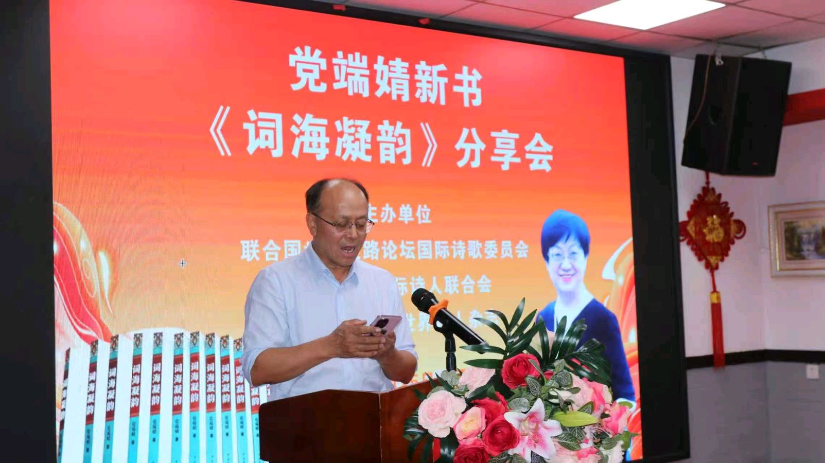 丝绸之路国际诗人联合会主席、联合国世界丝路论坛主席王芳闻主持并致辞,她介绍了诗人党端婧新书《辞海凝韵》诗歌创作的基本情况,并进行了精彩点评。