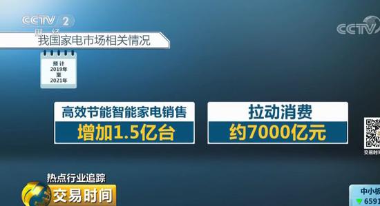今年1月,十部委印发了《进一步优化供给推动消费平稳增长 促进形成强大国内市场的实施方案》,支持家电下乡。国家发改委预测,若该政策在全国推广,在2019年至2021年期间,预计就可以增加1.5亿台高效节能智能家电的销售,拉动消费约7000亿元。