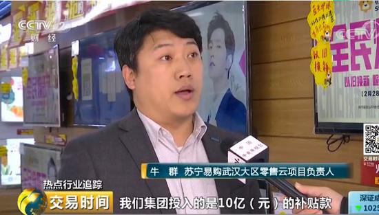 苏宁易购武汉大区零售云项目负责人 牛群:我们集团投入的是10亿元的专项的补贴款,来进行节能补贴的活动,给整个农村市场的消费升级和更新换代带来补贴。